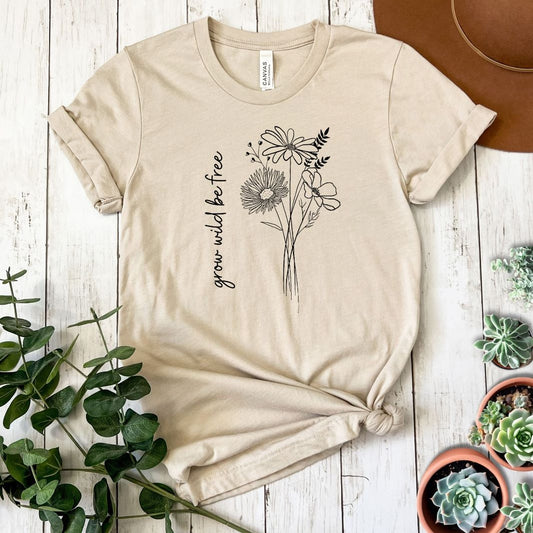"Grow Wild Be Free" Wildflower Short Sleeve Tee
