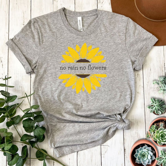 "No Rain No Flowers Sunflower" Short Sleeve Tee